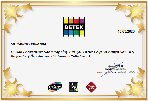 Firmamız Betek Boya ve Kimya Bayisiidir.